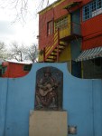 The rain of the last two days left a chilly air. It became quite cold as the bus motored along. The tour took us through the central streets. We admired the landmark buildings along Avenida de Mayo and the rest of central Buenos Aires before taking a roundabout route to La Boca. We passed the Boca Juniors Stadium and its yellow painted brick exterior. Then we arrived at Caminito. It was a short pedestrian walk lined with corrugated metal buildings of so many different colours. There were artists everywhere representing the vibrant life of the neighbourhood. There were also many gift shops, stalls, and a tango dancing demonstration.