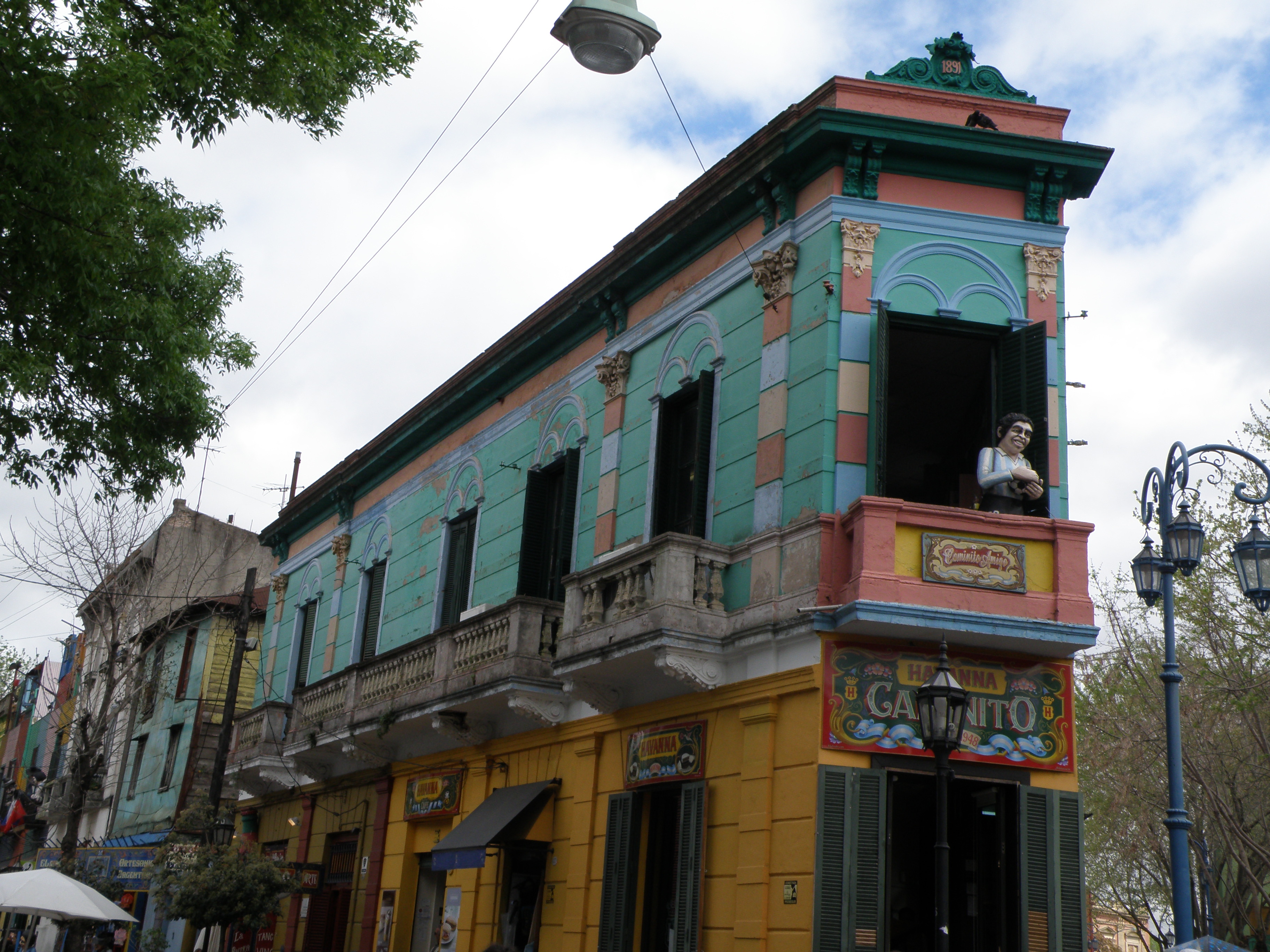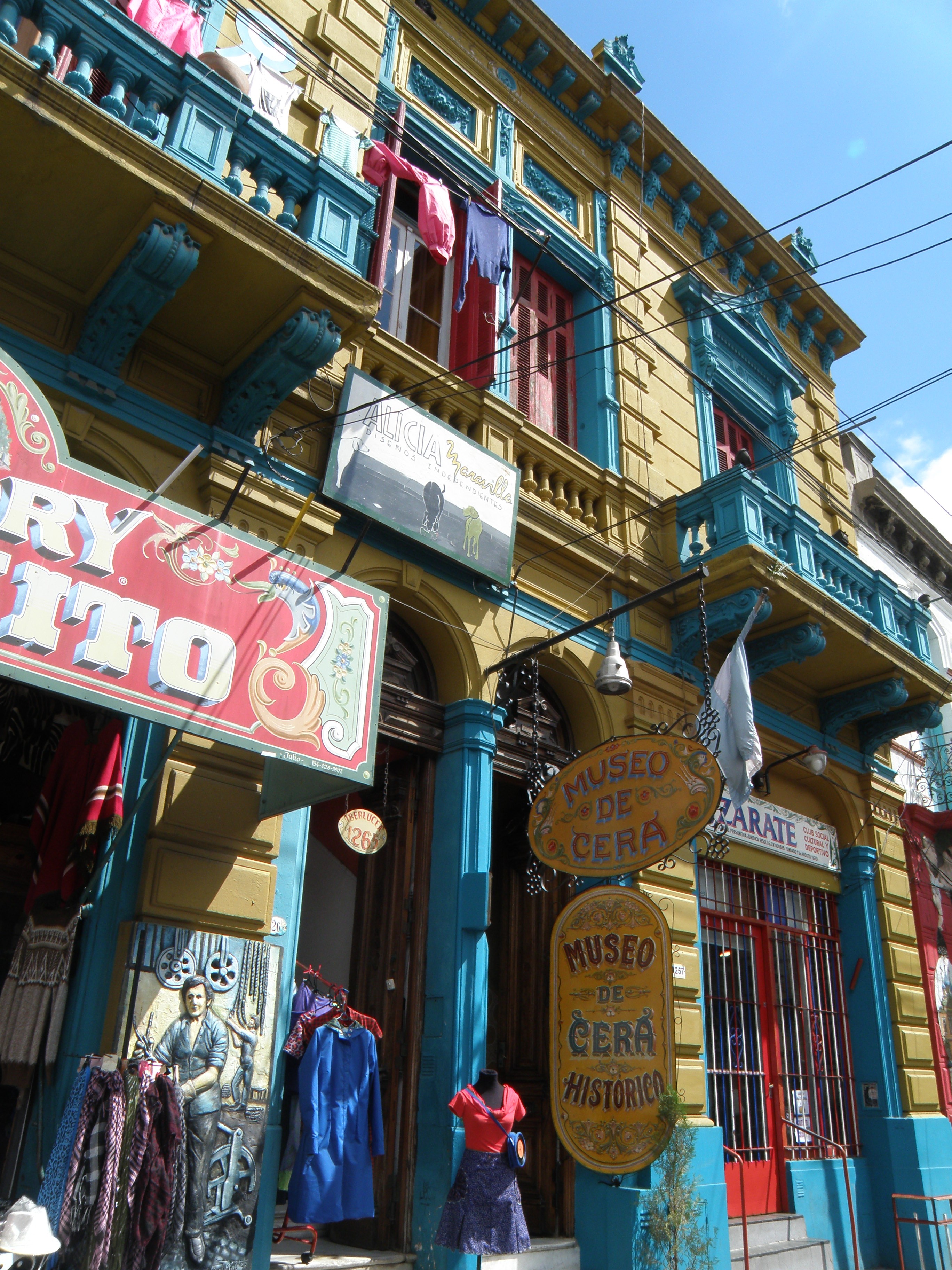 The rain of the last two days left a chilly air. It became quite cold as the bus motored along. The tour took us through the central streets. We admired the landmark buildings along Avenida de Mayo and the rest of central Buenos Aires before taking a roundabout route to La Boca. We passed the Boca Juniors Stadium and its yellow painted brick exterior. Then we arrived at Caminito. It was a short pedestrian walk lined with corrugated metal buildings of so many different colours. There were artists everywhere representing the vibrant life of the neighbourhood. There were also many gift shops, stalls, and a tango dancing demonstration.