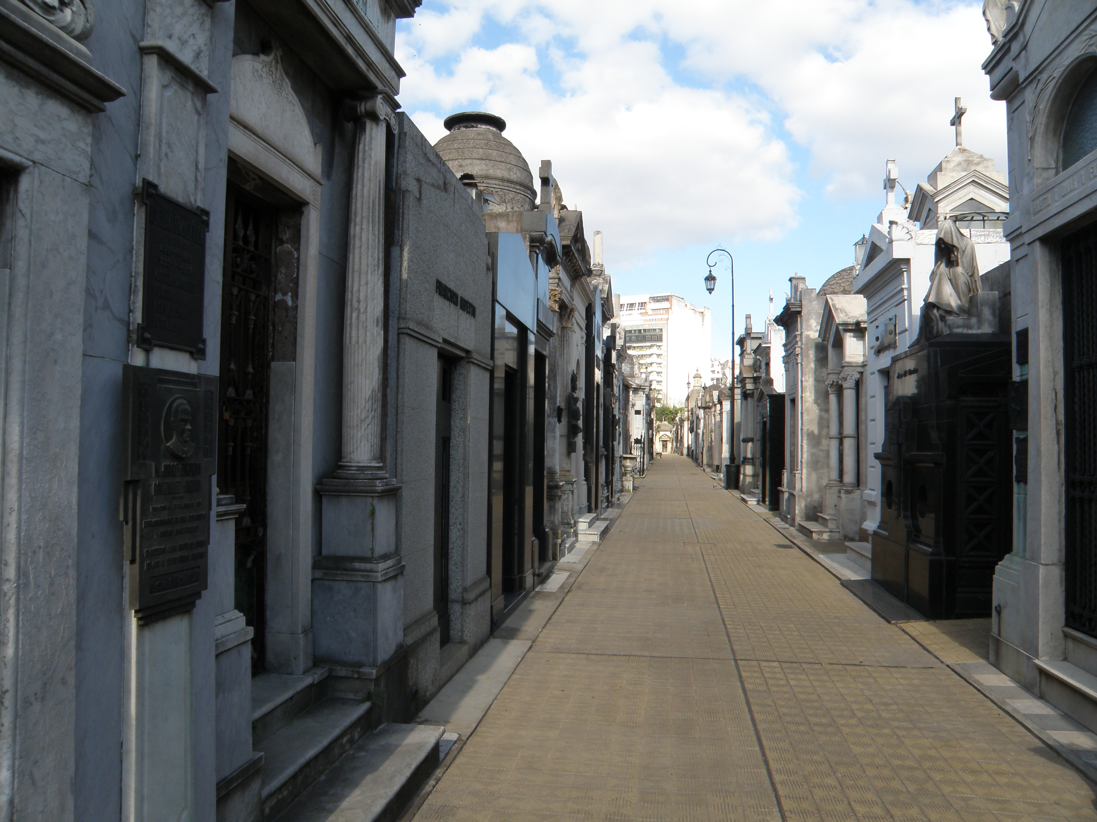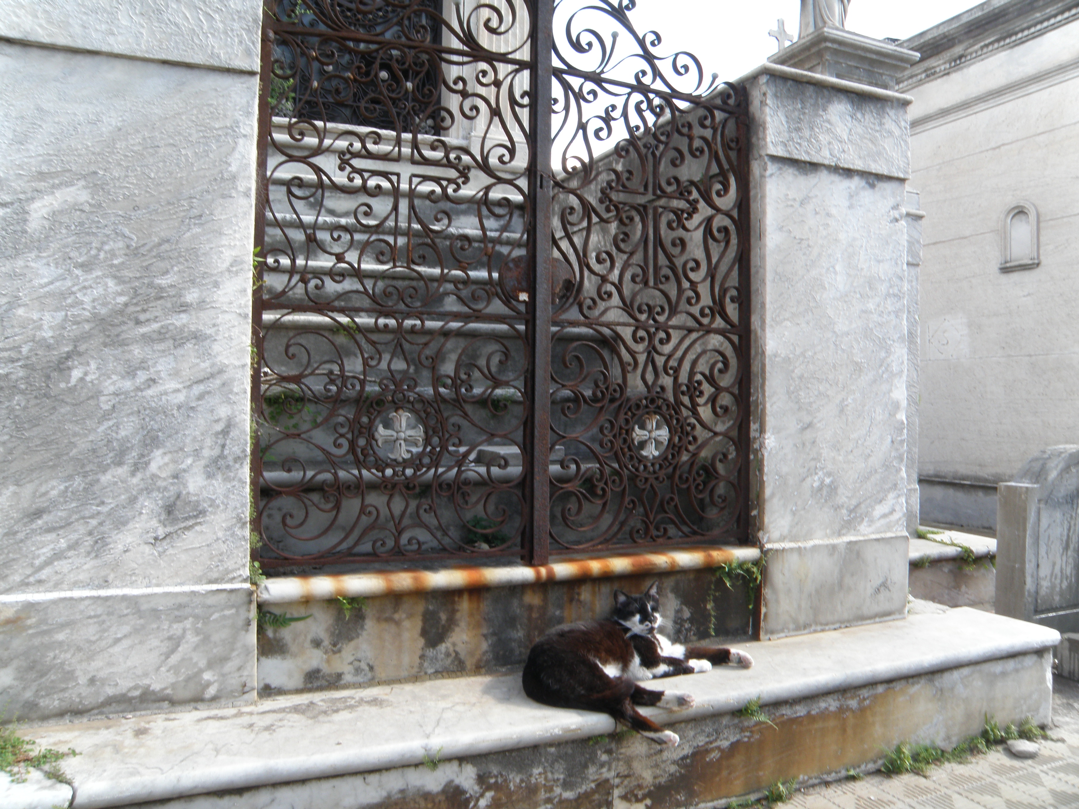 Vanessa’s English was very good, after studying it in college back in 2003 and 2004. She explained her work as a geologist. The light waft of tree pollen was beginning to make me sneeze in Palermo. We hopped off again in Recoleta and found a restaurant where we shared pizza. We were just a couple of blocks away from the Cementario de La Recoleta. The walled cemetery was a tranquil setting in the middle of the bustling town. A Brazilian stopped and questioned all the effort to build such huge monuments to the dead. However, I viewed it a lot like I did eight months ago. It seemed to be about something that lasted, an eternal gesture of love.