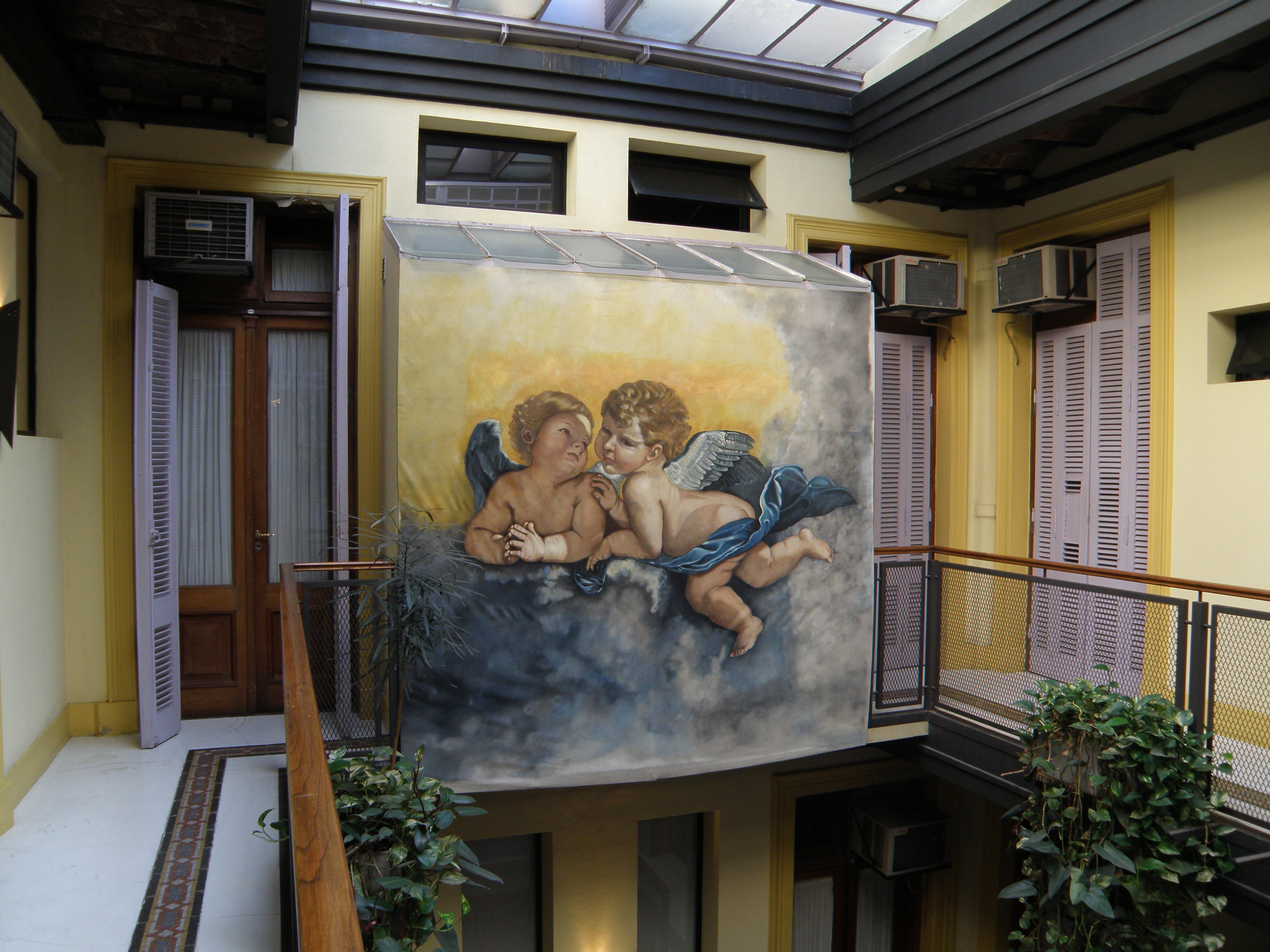 I now wanted to be somewhere that brought this adventure to a grand close. After collecting my laundry, I emptied my tattered rucksack and put everything inside my backpack. I shoved my passport and wallet into my zipped fleece pocket, checked out, and made my way to Hipolito Yrigoyen. I soon warmed to the 19th Century interior surroundings of Portal del Sur. The old-fashioned lift and dark furnishings were stylish. There were lots of large potted plants and a natural light from the glass domed ceiling above the elegant landing.