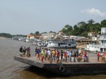 I enjoyed my best sleep in a hammock! As dawn broke soon after 5.30am there was still plenty of activity on and off the boat. A large cargo of bottled beer was dispatched onto the small dockside and coffee and bread were served up on deck. It was a scorching hot day, almost identical to Saturday. Groups huddled around the bar were still drinking. The forro music was played at a more tolerable volume. After a lunchtime stop further down river, a pigeon flew on board. It remained underneath the rescue equipment and life rafts until the next stop, where it disembarked!