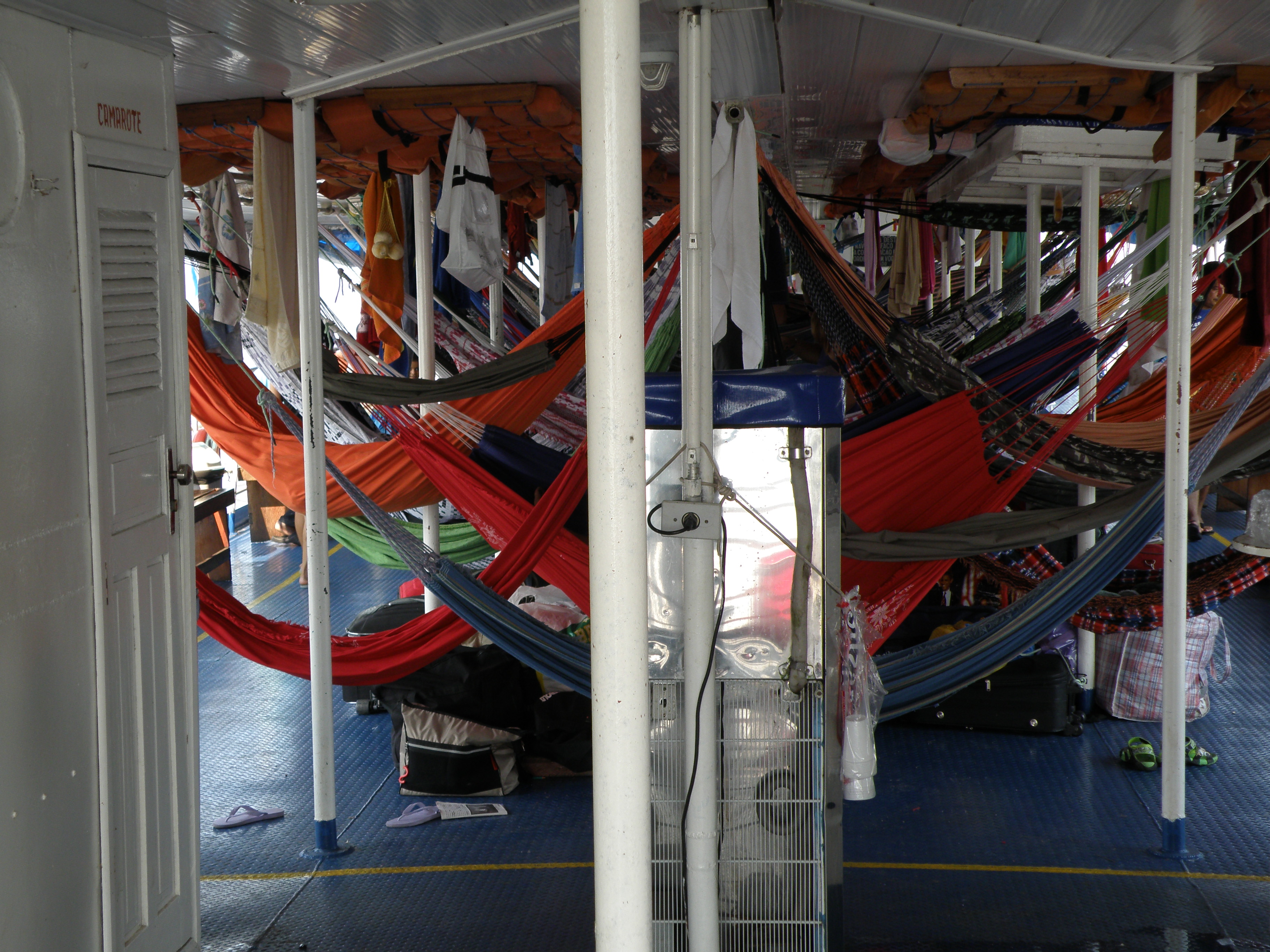 After a couple more cans of Skol, I returned to the middle deck and squeezed into my hammock. Amidst the heavy engine noise of the boat and the loud laughter and foot stamping from the dancers upstairs it was easy enough to rest. I chuckled to myself. There were people in hammocks above and below me. It was certainly a new experience on a proper Friday night.