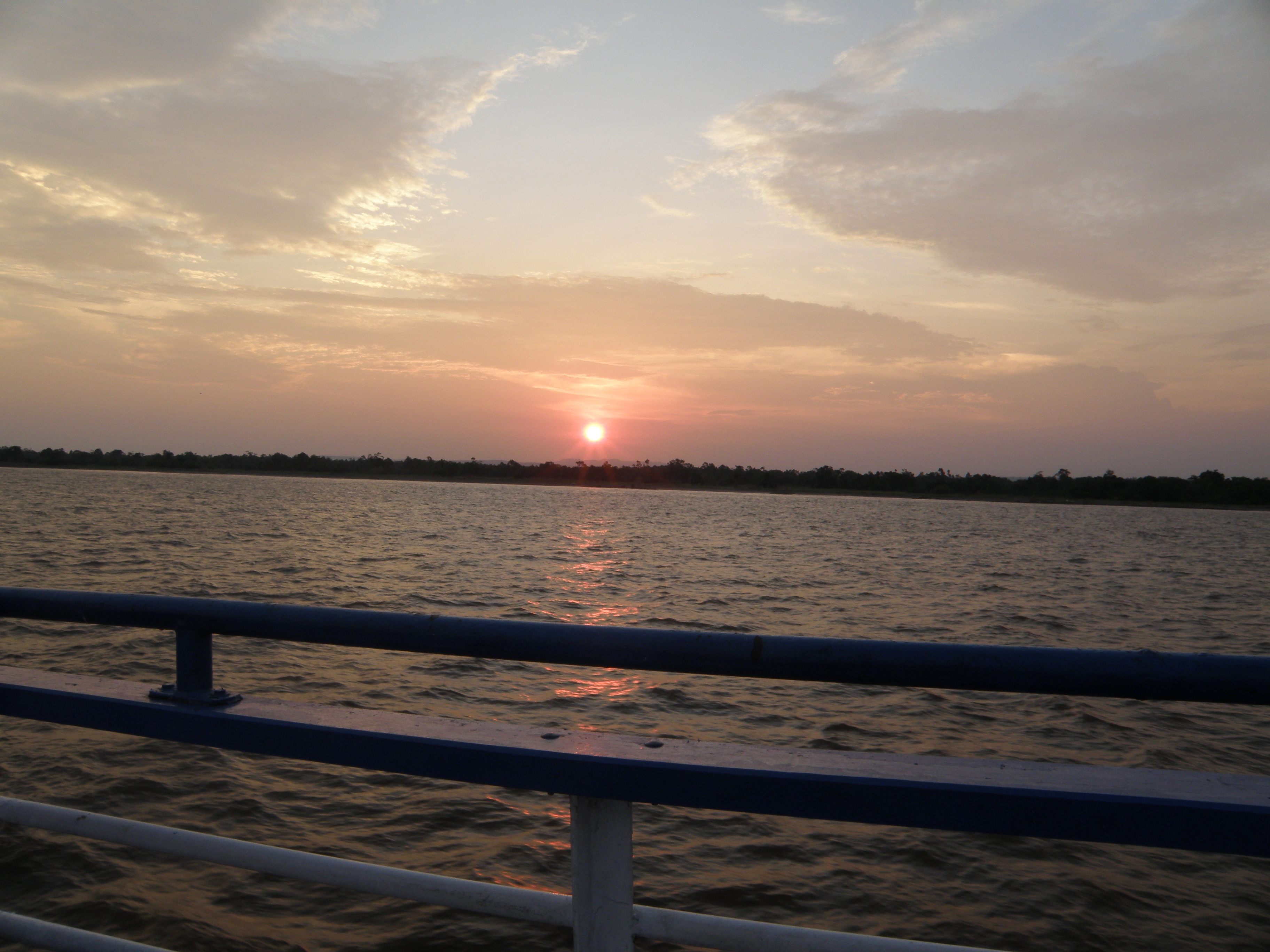 There were a few other travellers hovering about. I got talking to Tiago and Helena from Boston, Massachusetts. They were on a three-month trip around this huge country. Tiago had family in Brazil. He knew a considerable amount about the country and enthused about its size, resources, and colour. Fabrizio, from Basle, Switzerland, joined us and we had a few beers. It was a hot day. I stayed on the top deck taking in the dripping sun and admiring the wide river as evening approached. They were a lively bunch on the top deck. It seemed a friendly and gregarious atmosphere. I had to keep my wits about me and remained sensible despite drinking quite a few beers.