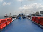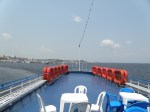There was little else to do but take some sun on the top deck. It really wasn’t that difficult! The boat was cruising at a leisurely rate of knots to match the pace of the 200 or so passengers remaining on board. I drank some Fanta grape juice, read Wild Swans and occasionally chatted. I got into an engaging conversation with Marco from Flamengo in Rio de Janeiro. He was an amiable character. We chatted in Spanish. He had a folksy manner about him. Life was for living, said Marco, and he was certainly winning. With an eager eye for the ladies Marco was certainly quick to join them underneath the top deck showers at the stern end!
