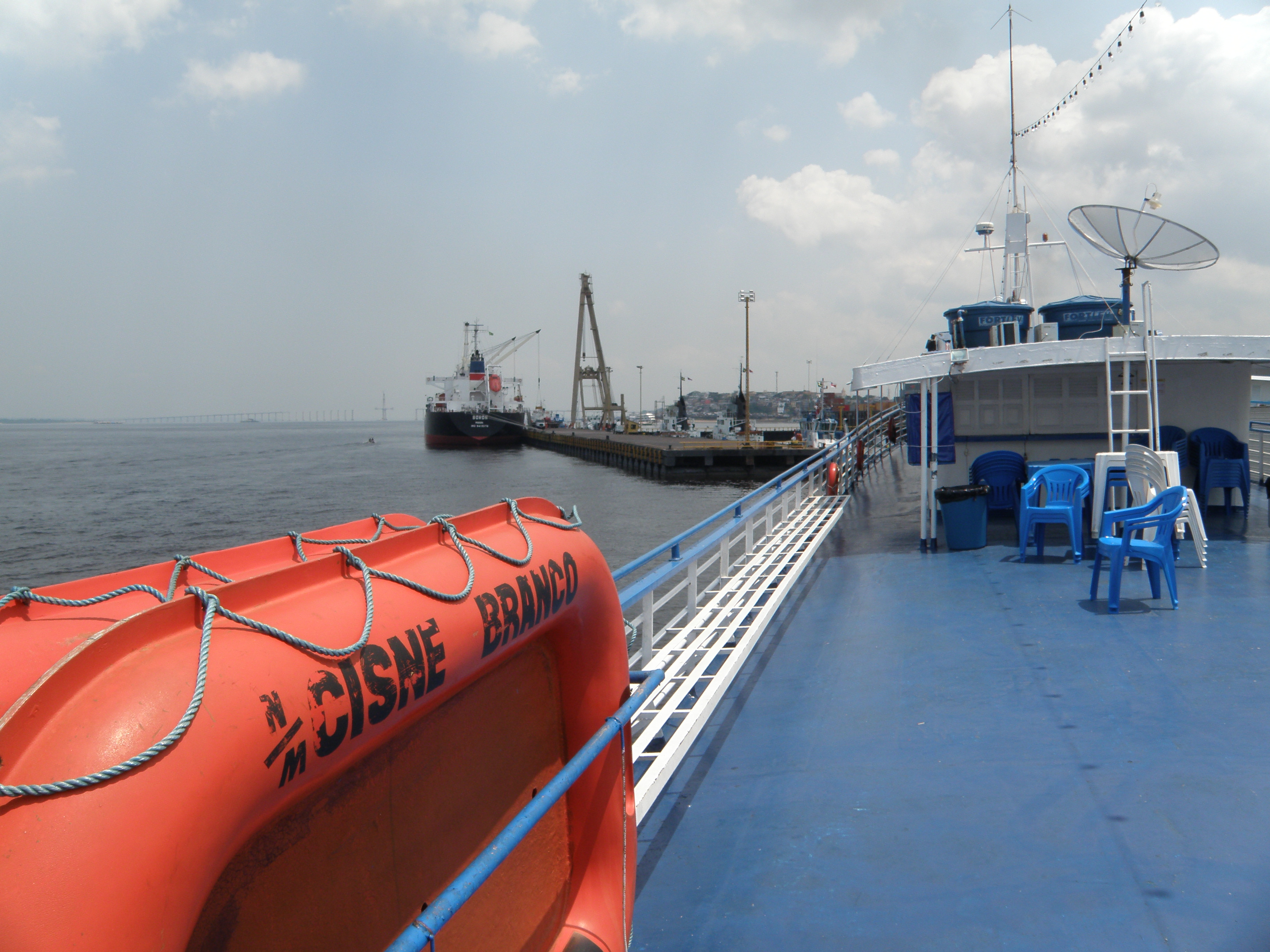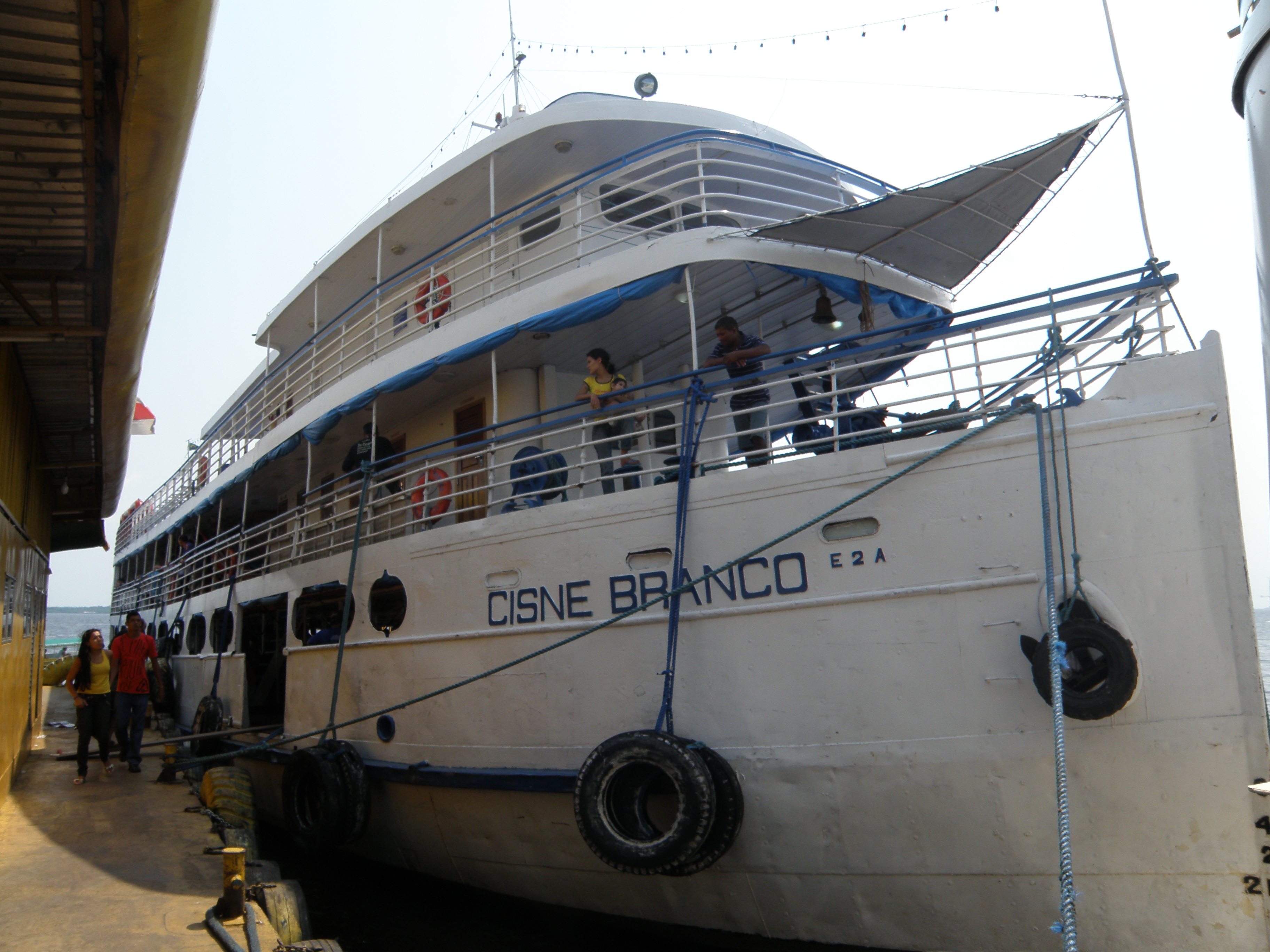 I’d started taking my Malarone pills when I left Ciudad Bolivar. There were no mosquitoes bothering me yet, but I had to be prepared as advised. I also had the repellent just in case. After a breakfast of fruit, coffee, and bread I collected my laundry at reception and bought some bottled water and batteries. I was quite refreshed and rather excited about the day ahead. I imagined a delirious, live link commentary as I walked the half kilometre down to the port! The N/M Cisne Branco (White Swan) was there bobbing up and down in anticipation.