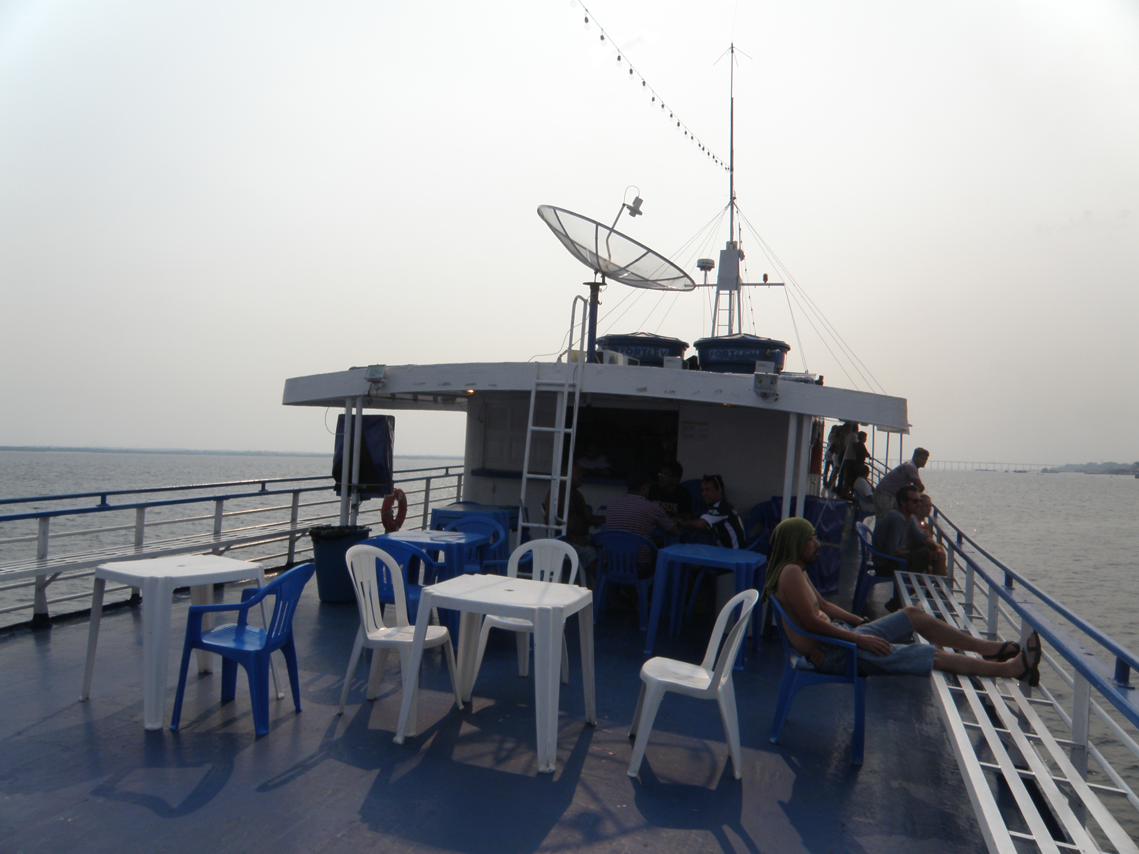 I caught up with Tiago again. He and Helena had tickets just for Santarem, but time was of an essence for them. Reaching Belem, Tiago reckoned, would make access to transport easier. I helped convince them both to stay on board. There was far more space once the Santarem-bound passengers disembarked. The boat was moored up as the crew and top deck party people headed onshore for a night out on the town.