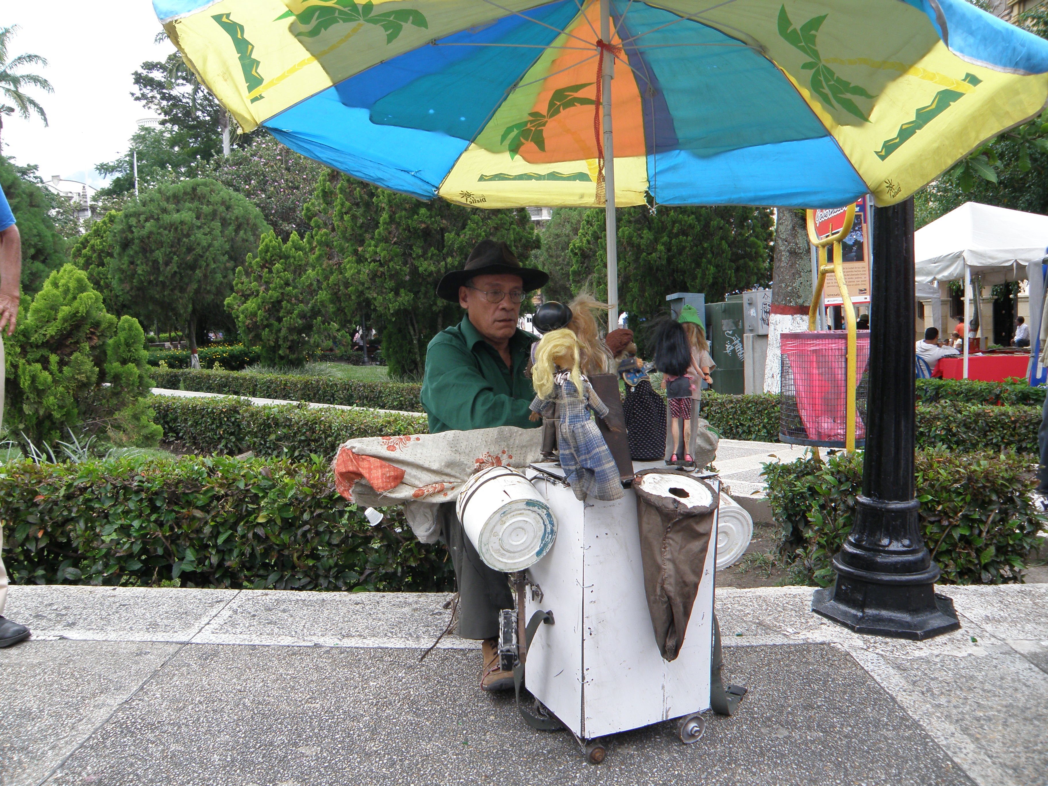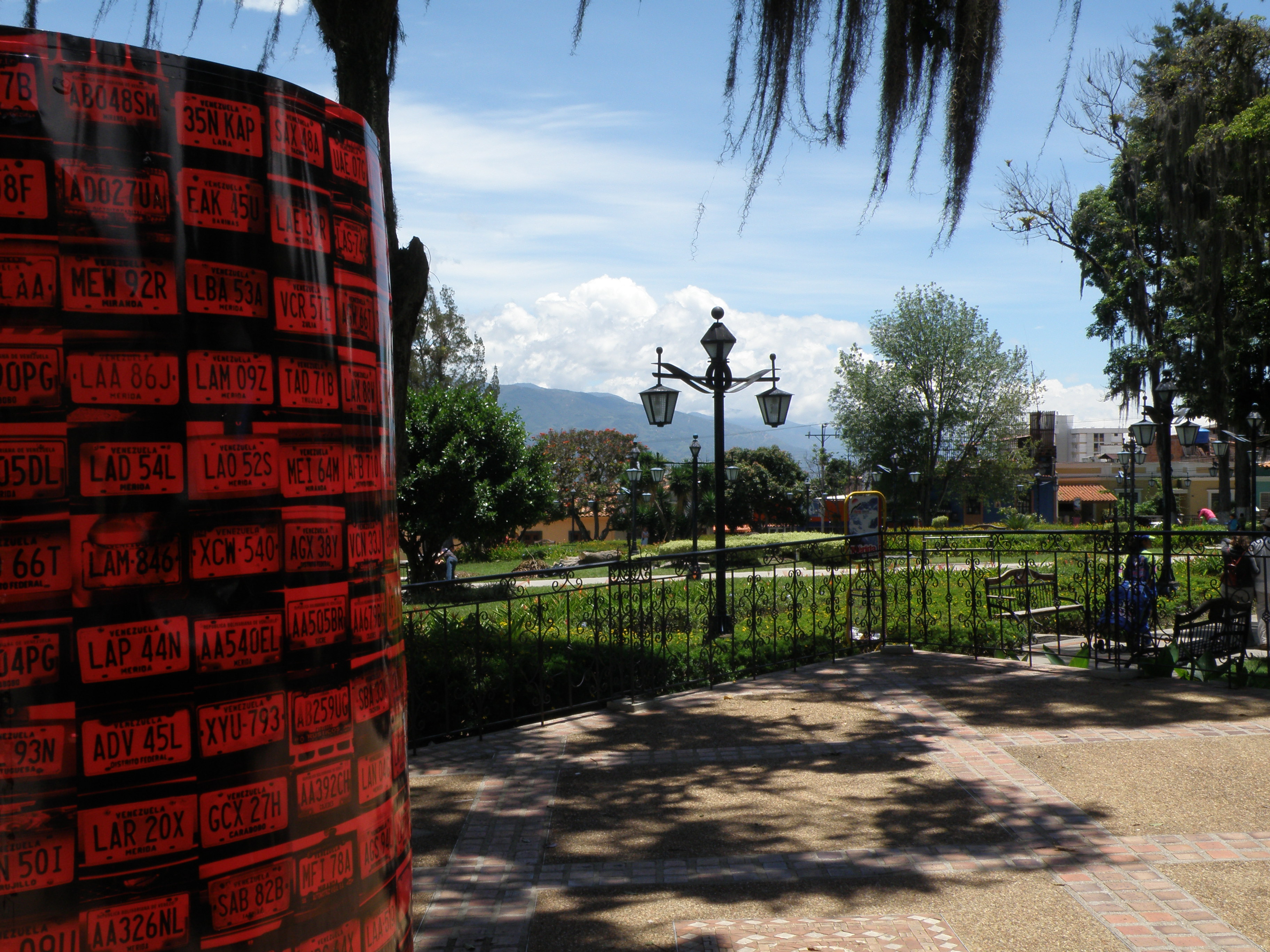 Simon and I ventured along the Viaducto Campo Elias over the Rio Albarregas. Crossing the bridge, we saw the bizarre sight of a load of dumped police vehicles close to the river’s edge. What was all that about? We ambled on down Avenidas Las Americas to the Mercado Principal. It was a rather commercial arcade. The craft shops sold lots of ornaments. We returned to the hostel, finding a cheap lunch along the way.