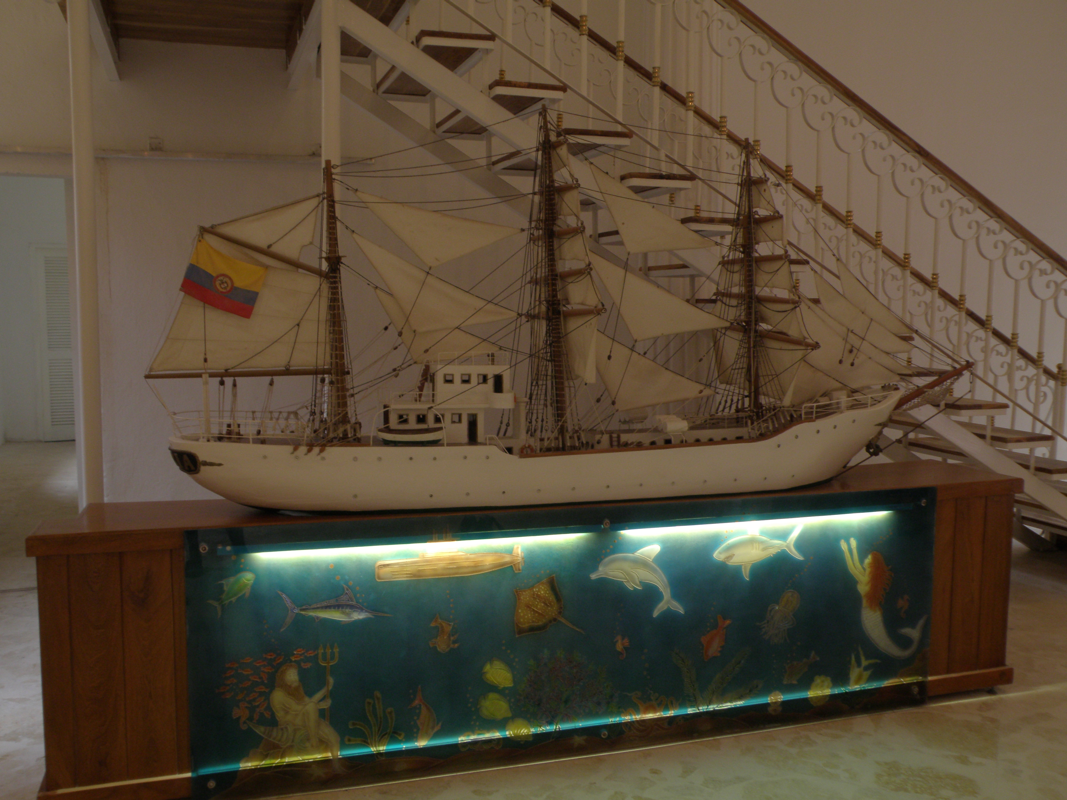 It was raining outside so I later went to check out the museums. Starting at the Museo de Arte Moderno, I admired some interesting images by French painter Pierre Daguet. The Museo Naval del Caribe stood out with its comprehensive display and recording of the naval history of Cartagena and the Caribbean. There were lots of guns, flags and paintings. Impressive models, from various international fleets, including The Bounty, Cutty Sark and HMS Victory graced the displays.