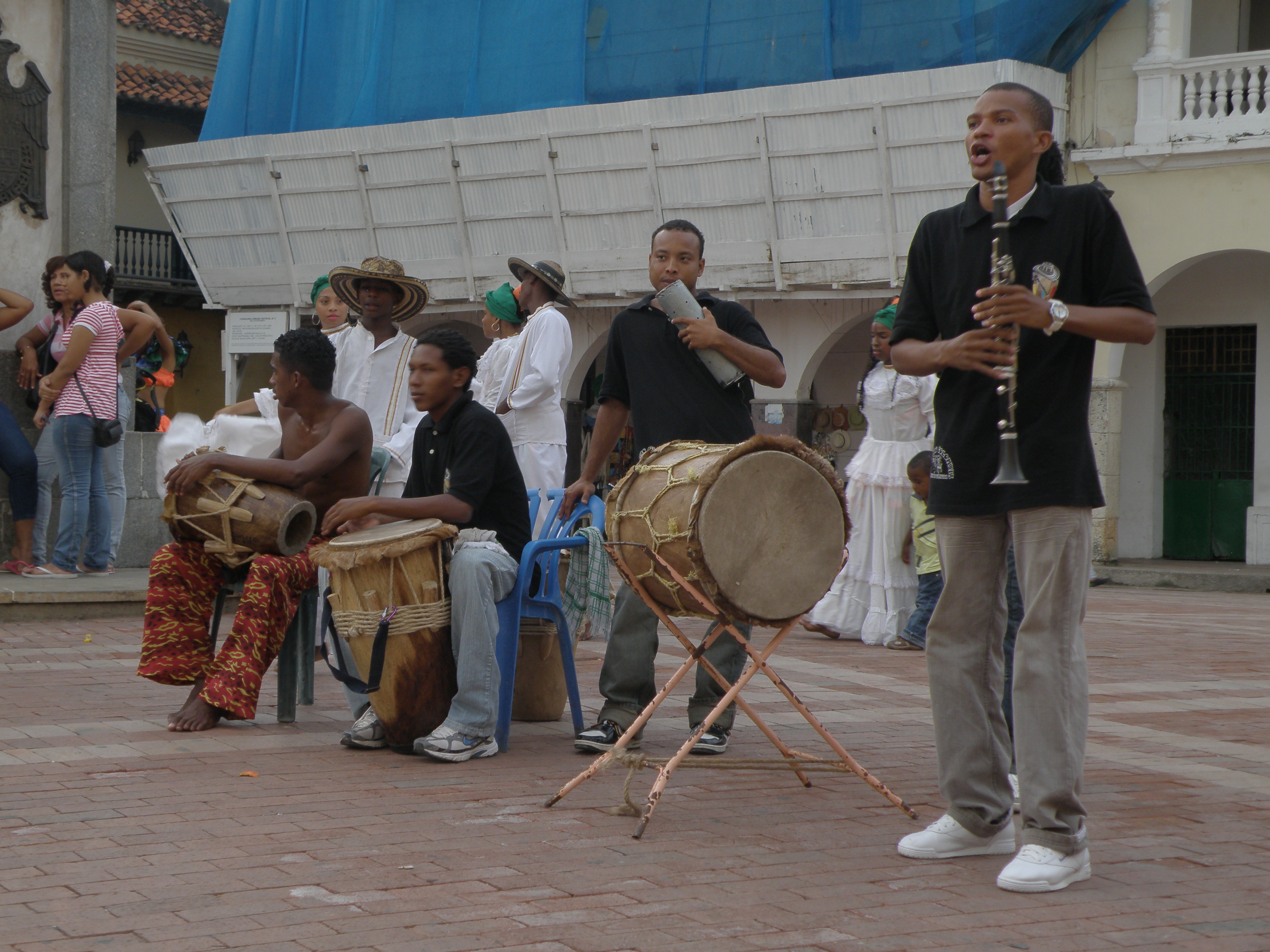 After dinner, I spent another evening at the Maria Feliz. It was showing a black and white film about Colombian journalists. There were lots there, paying full and quiet attention to the white wall. A yelping dog tried to enter and break the concentration. I was intending to stay out for another evening and crossed the street to check out another bar. Nothing much was happening there, but a jazz band was warming up for an all-night session.