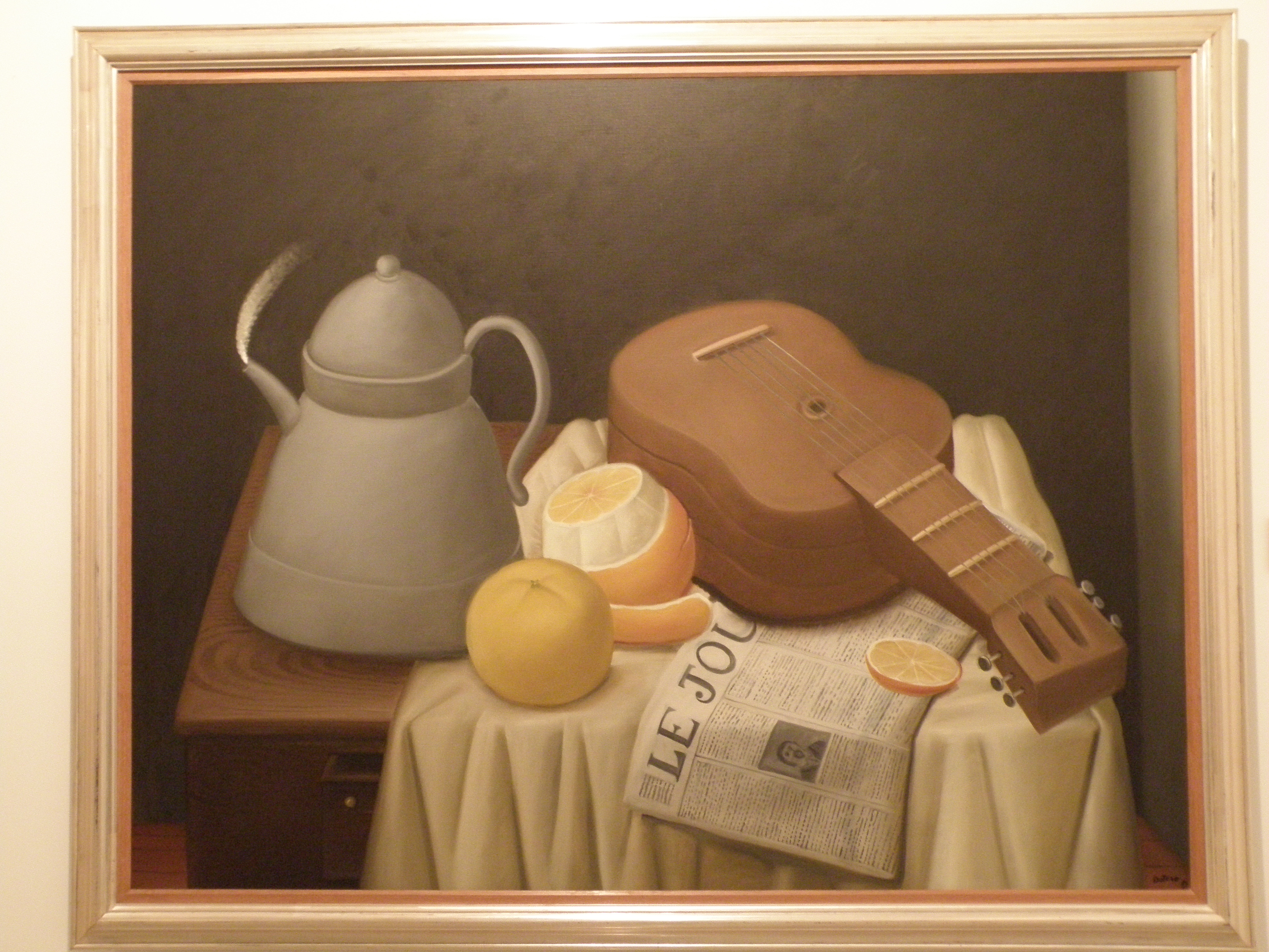 We visited the hugely enjoyable Museo de Antioquia. It housed pre-Hispanic, colonial, independence, and modern art collections spanning Antioquia’s 400-year history. An exhibition of the region’s music captivated me. There were so many different instruments. Of all the paintings, Fernando Botero’s typically inflated orange, with a worm crawling out of it, did it for me. Botero’s large bronze sculptures, Los Gordos de Botero, were sat outside in the Plazoleta. They really captivated the Saturday crowds. There were so many sculptures of large ladies, cats, and dogs. The Saturday market buzz subsided as we came across a family of musicians sat on a large bench. Their lovely guitar sound and lush vocal harmonies were quite a contrast to the day’s hustle and bustle.