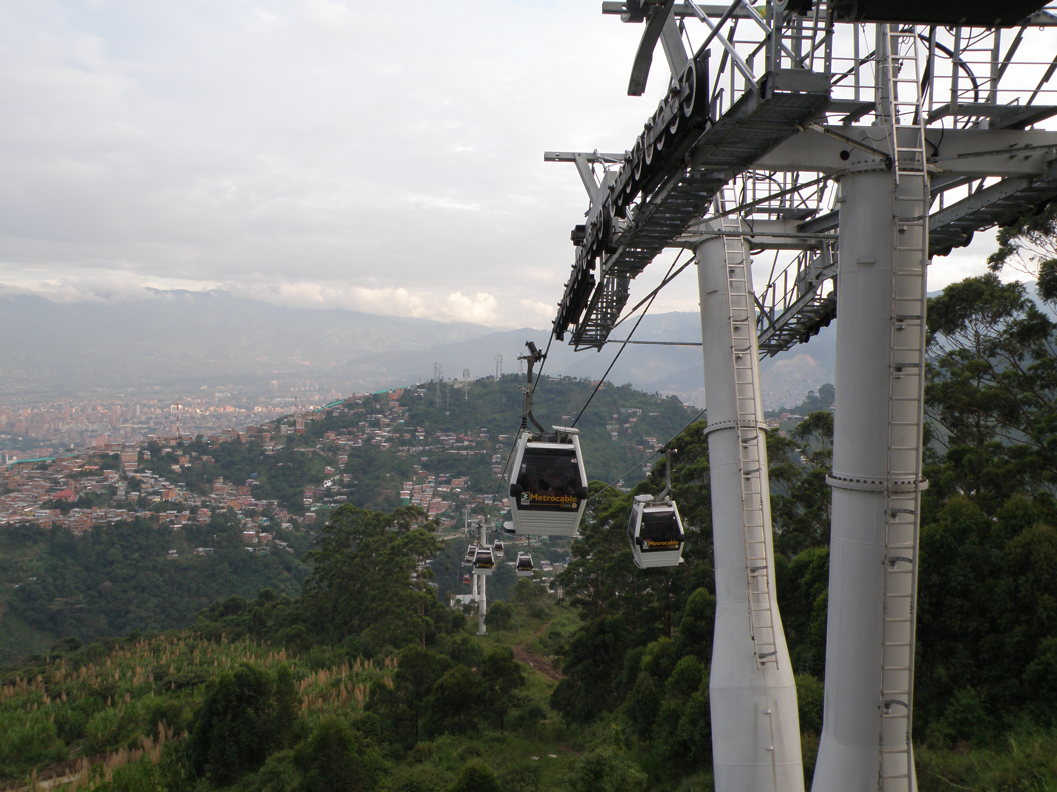 The BBC Online article about Medellin inspired me to take the Metrocable Arvi from Acevedo Station. The high cable car connects the underdeveloped barrios up on the hills down to Medellin’s modern city centre. It was the world’s first cable propelled transit system and reached parts of Medellin previously inaccessible to most forms of transport. The barrios were redeveloped in years gone by with funds from Pablo Escobar. The huge costs for the metro came from elsewhere as the authorities attempted their own clearances of the higher districts above Medellin.