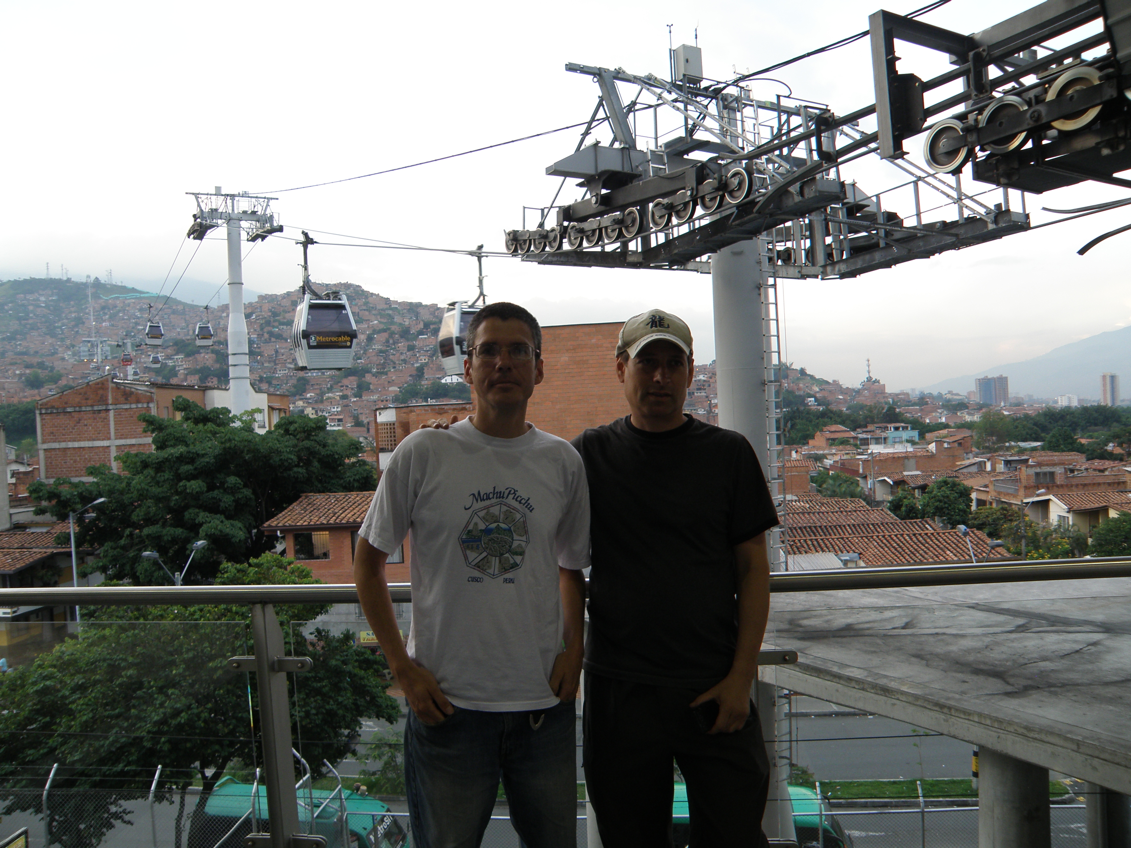 After lunch we made our way to the Jardin Botanico to enjoy our first glimpse of Feria de Las Flores happenings. There was already lots of partying and live bands, but I think we’d missed the opening parade. However, the gardens featured lots of fine shrubbery to admire. Jon wanted to check out the cable car ride on the western hills of Medellin, so we took the Linea B from San Antonia to San Javier. It was a much higher climb on Metrocable Linea J from San Javier to La Aurora. At about 1,300 feet over a deep, upper valley, our car came to a shuddering halt. It swayed slightly in the gusty wind for a good five minutes before resuming. Jon was deep in concentration and assured me we were waiting for the descending cars to pass. He was clearly fascinated by a system implemented by the City Council of Medellin and now managed by the corporation Metro of Medellin. A lady sitting opposite just couldn’t take much more and crouched on the floor. I hardly felt much better, but Jon calmed us all down. There was a hillside sprawl of skyscrapers in Medellin which concerned Jon. We took lots of photos and then returned to my hostel where I introduced Jon to some of the other guests.