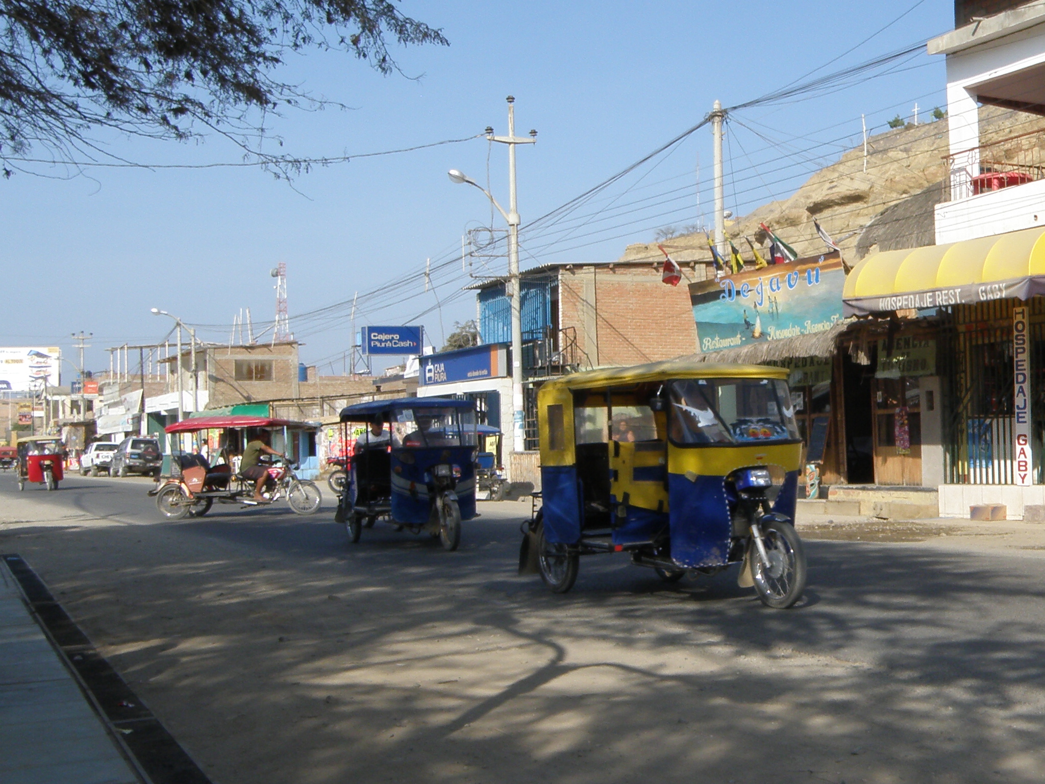 I took some pictures of the lovely looking swimming pool and then walked for a while along the beach. The blistering sun beat down on another increasingly hot day. I was drinking a lot more bottled water in Mancora. You needed to. My skin was reddening but my Villeneuve Bloqueador sun lotion was quickly running out. I enjoyed a fruit juice at the Lonely Planet-recommended Jugeria Mi Janett. Then I returned to the hostel to say farewell and collect my guitar and backpack. I promised to tell my friends about this place. There were many who would fall in love with its location. It was a little haven, perhaps even a paradise. Despite the heat and latitude, there wasn’t much of a problem with mosquitoes neither. They can create havoc just a few dozen miles inland or up the coast in Tumbes. With my bags and guitar, I squeezed into the backseat of a moto and quickly arrived at the bus booking office.