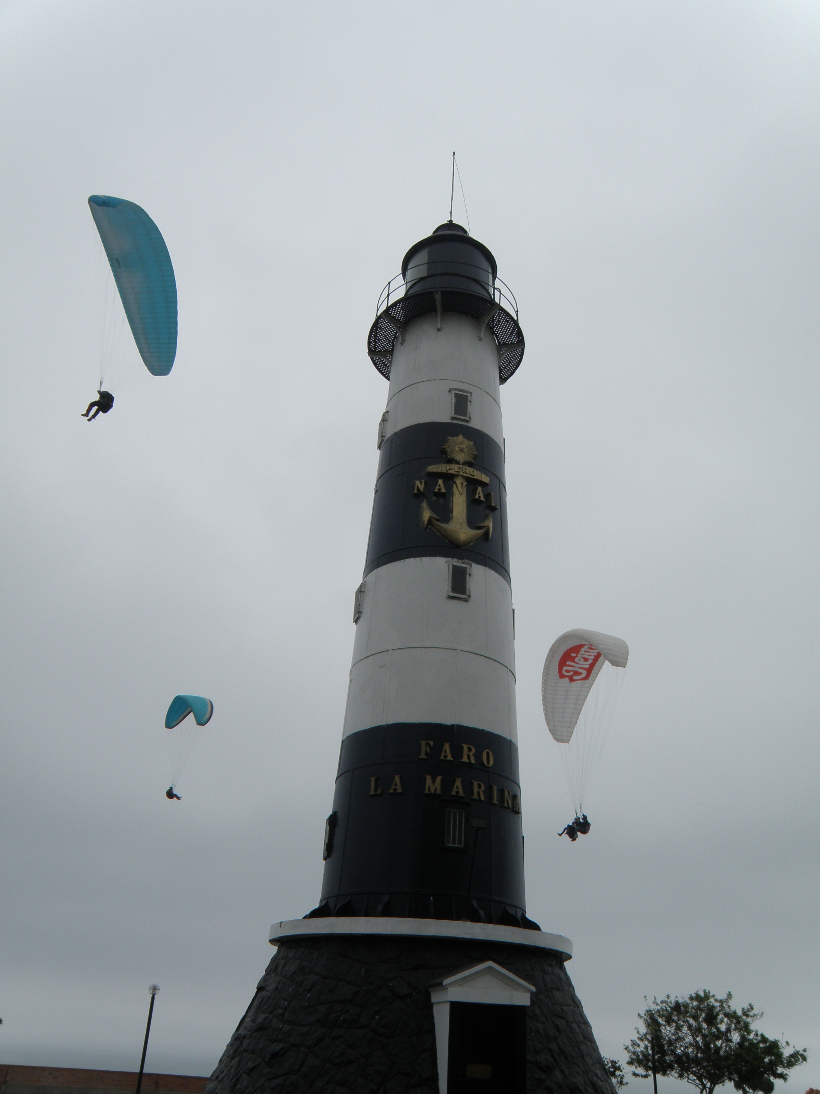 - Paragliders circle the Faro La Marina, Miraflores