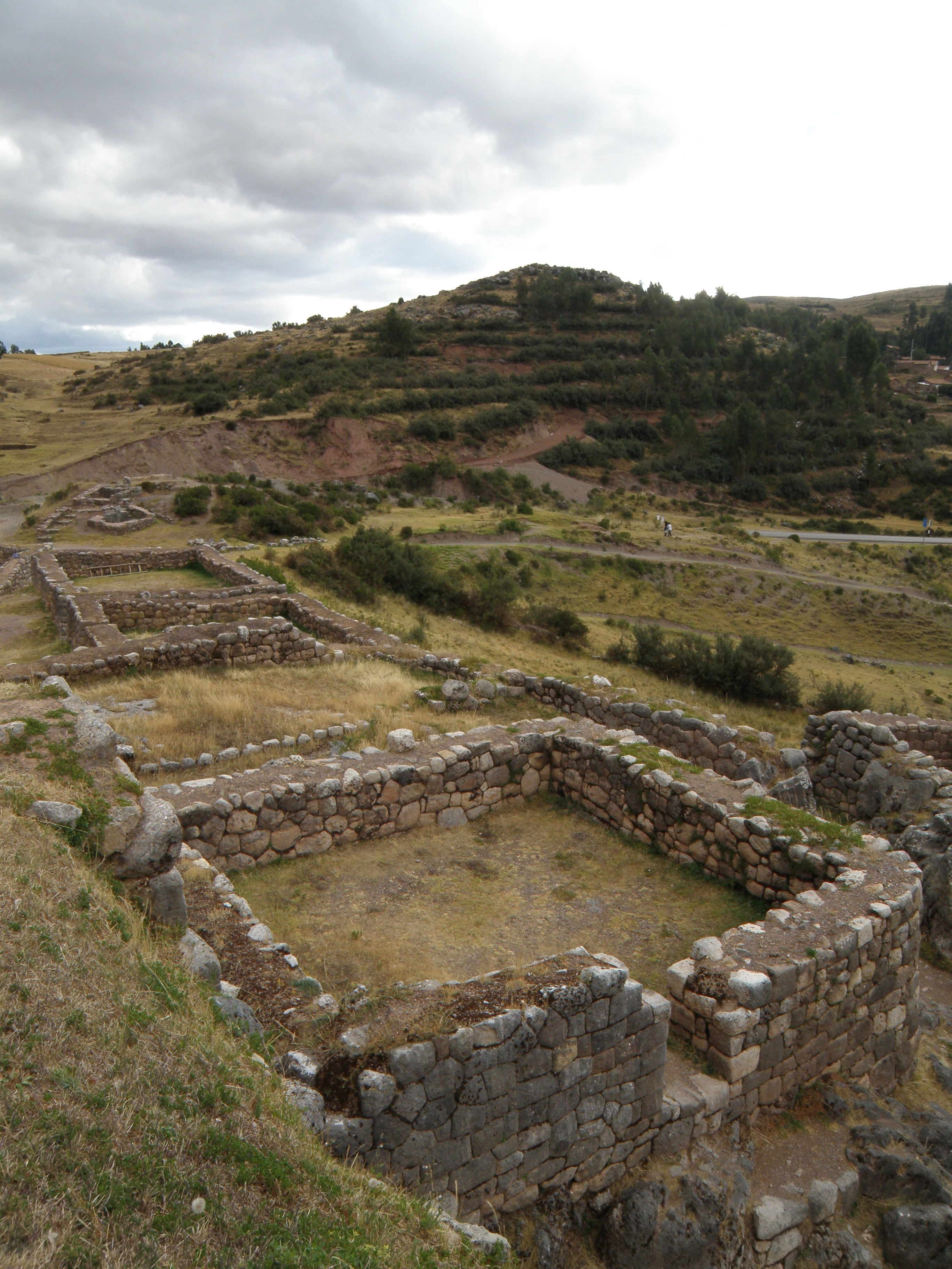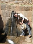 I was gladly out of the hot and stuffy bus and into a heavy rain shower. It quickly dampened the dust as I entered Tambomachay. The declining afternoon sun peaked through under the clouds. It shot a spectacular golden shine over the spring water site known as El Bano del Inca (Inca’s Bath). It was all sweet as the entrance attendant pointed to Puka Pukara just on the opposite side of the road.