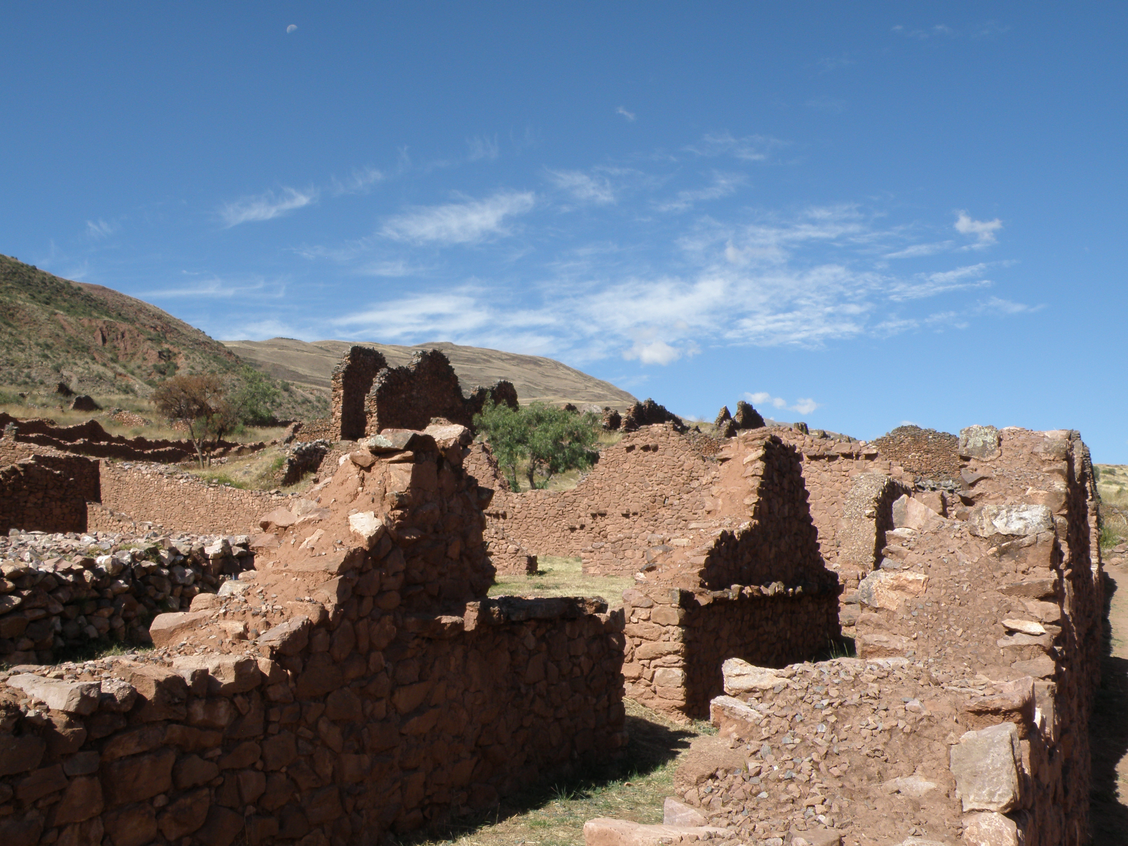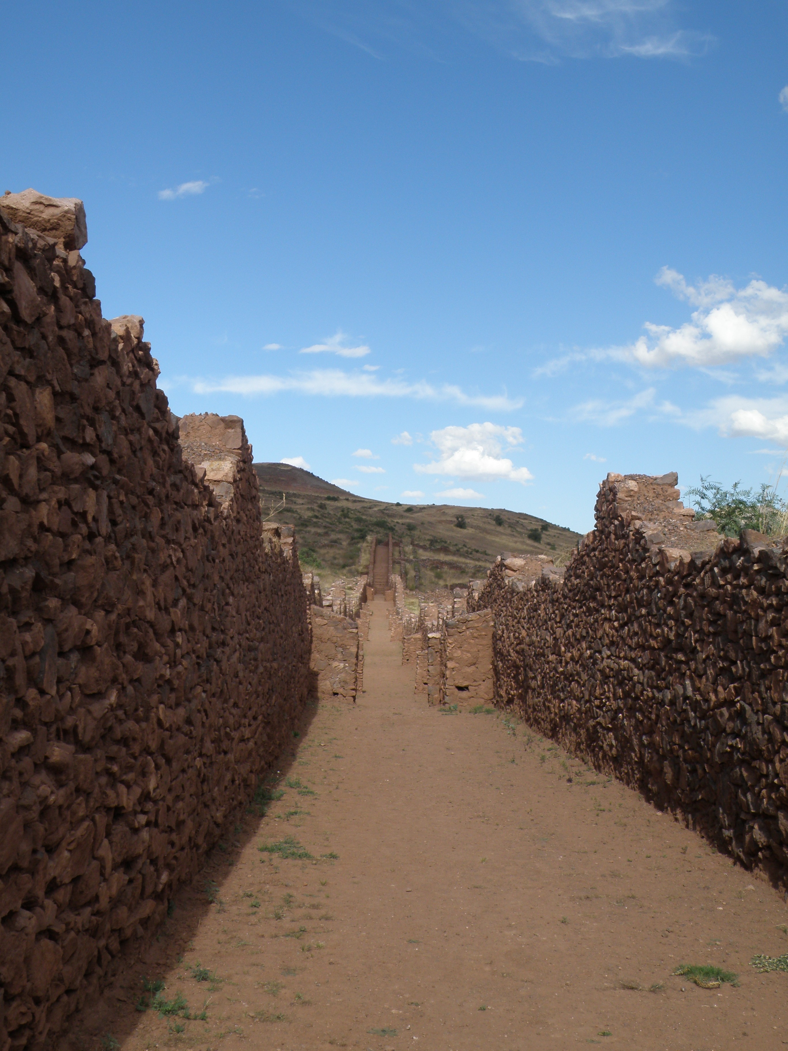 The hot wind picked up the roadside dust as the next bus dropped me off outside the Pikillaqta entrance. The site was once a sprawling ceremonial centre built by the Wari tribe, a pre-Inca people, and the only major pre-Inca place in the region. Huge, crumbling stone walls and collapsed multi-storey buildings were spread out in a most desolate scene. I only saw two other people during my two-hour stroll around the site. The stone barns had been restored to their original state with thatched roofs. I liked Pikillaqta and its additional love of the sun.