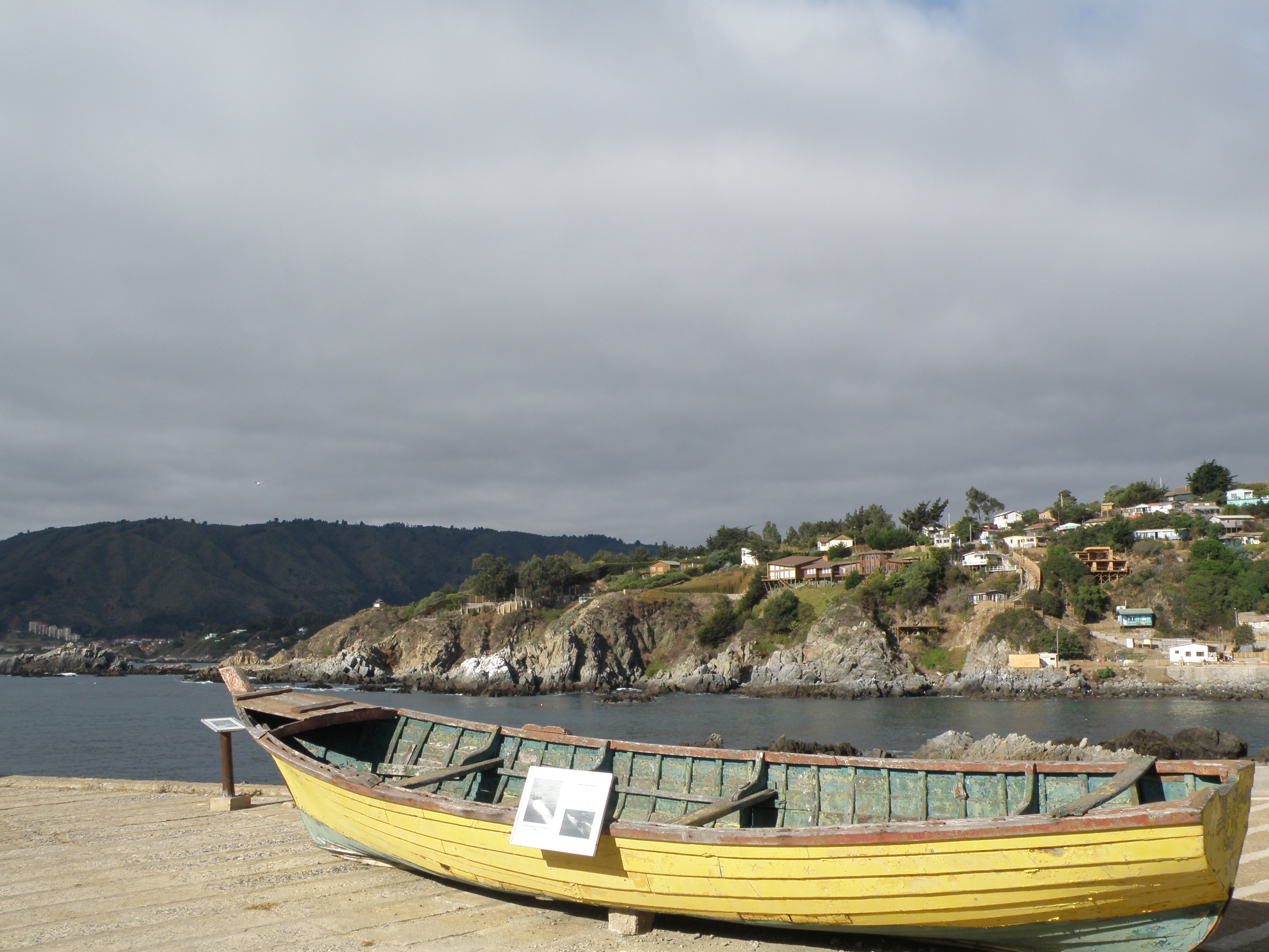 After breakfast I ventured out into the coastal fog and drizzle. I took a 2.30pm bus from the centre of busy Valparaiso for a 20 km trip down the coast to Quintay. Rave reviews in various guide books implored a must-see visit to this small fishing town. The journey took us high into the headlands and back down into Quintay, stopping eventually in a little plaza where I checked on the bus times back. A gentle serenity and stillness soothed the warm air as I walked down the steps to the marina. An English-speaking chap acknowledged me from his back gate and we got talking.