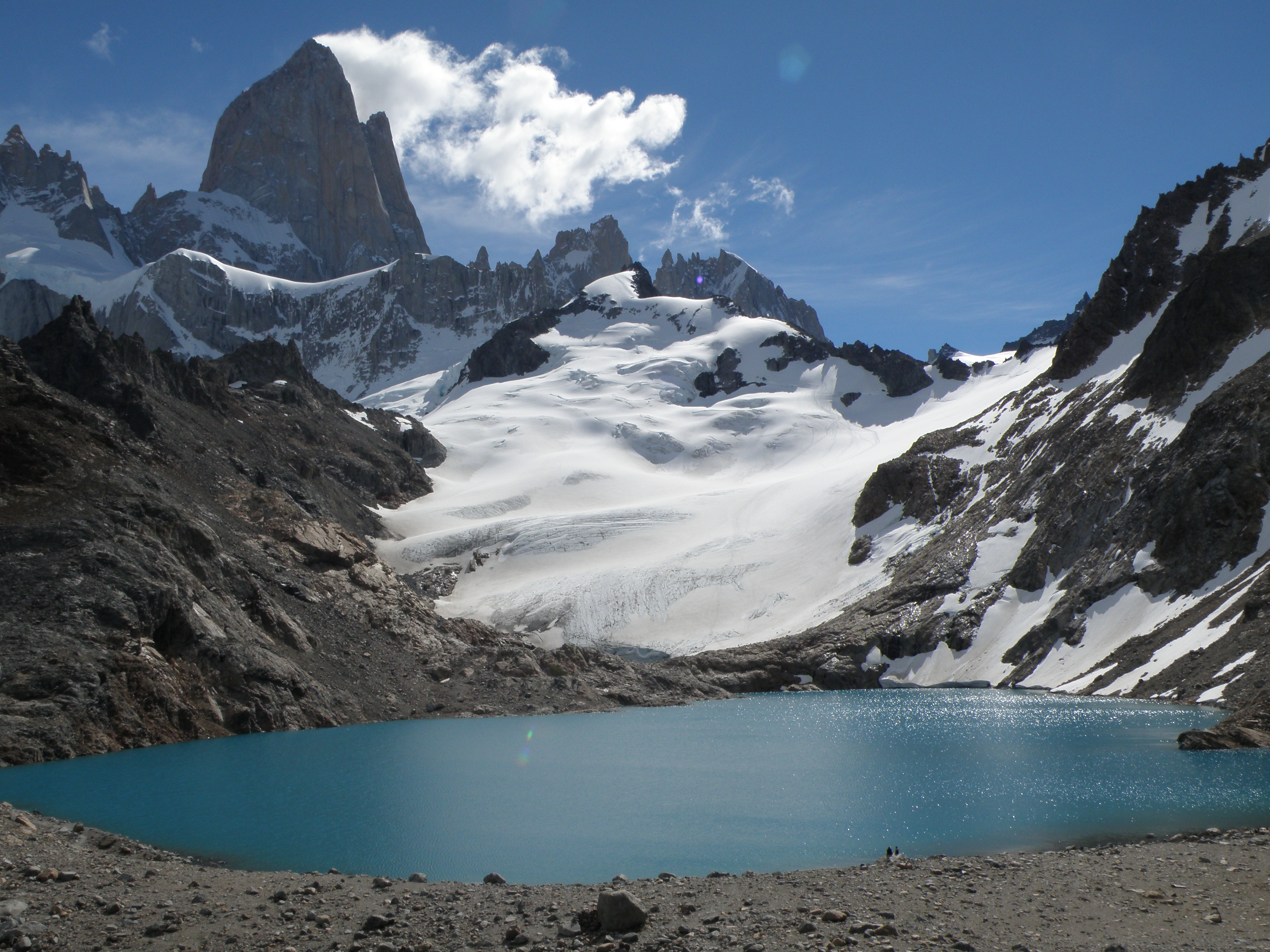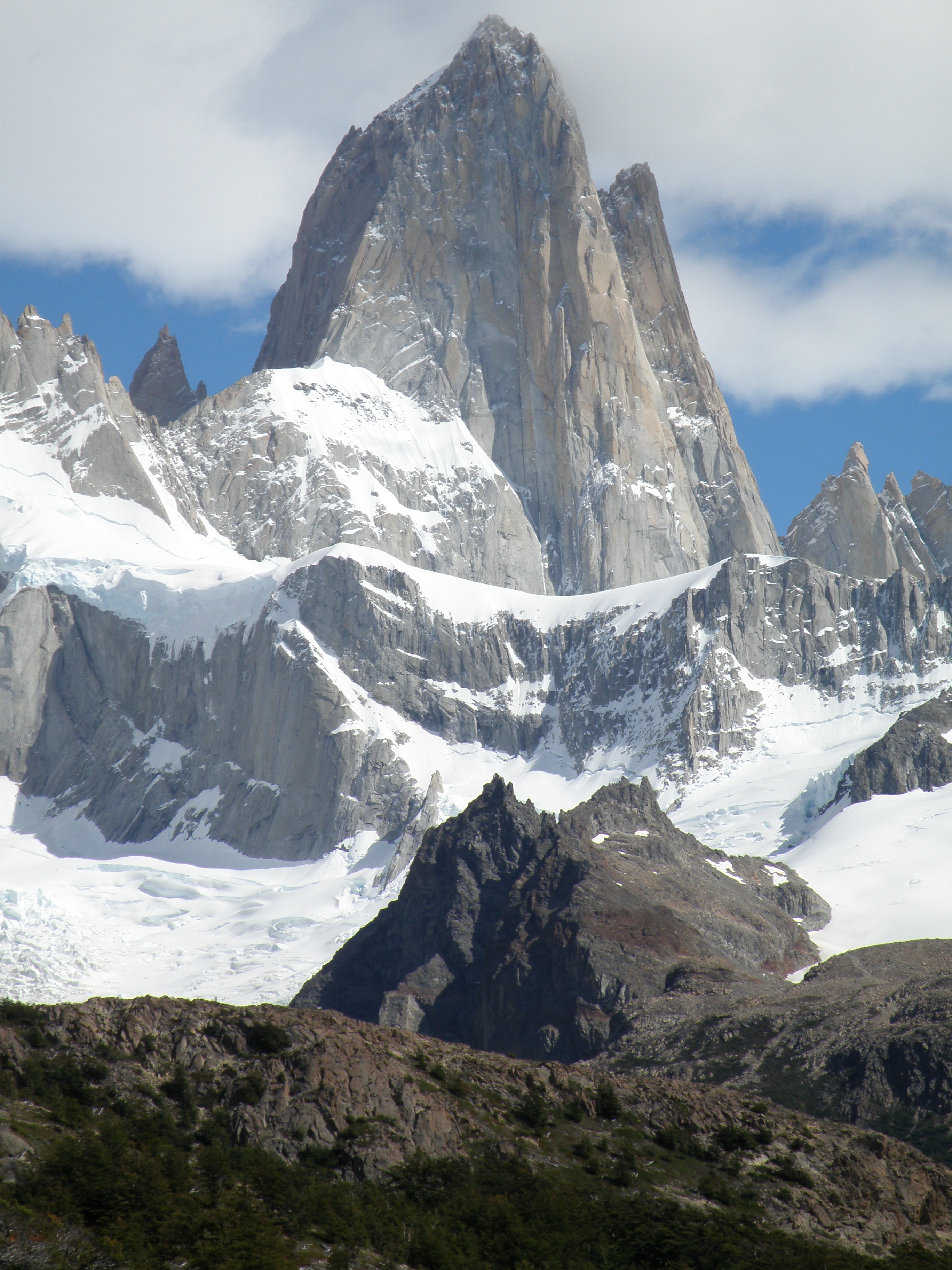 Descending from Fitzroy’s base, the beautiful scenery and distance merged into one vivid dreamscape of rocky routes, tall trees and blue sky bliss. There weren’t too many fellow hikers around. A cool young American walker and her male friend and some young Argentine lads were having a great time revelling in all the space, solitude and freedom. It was a superb place to doff one’s cap, shout Buenos Dias and reflect on what a great world we live in! I relayed the day’s happenings to Laura from Denver later that evening as other sun burnt hikers safely returned from their adventures before darkness fell.