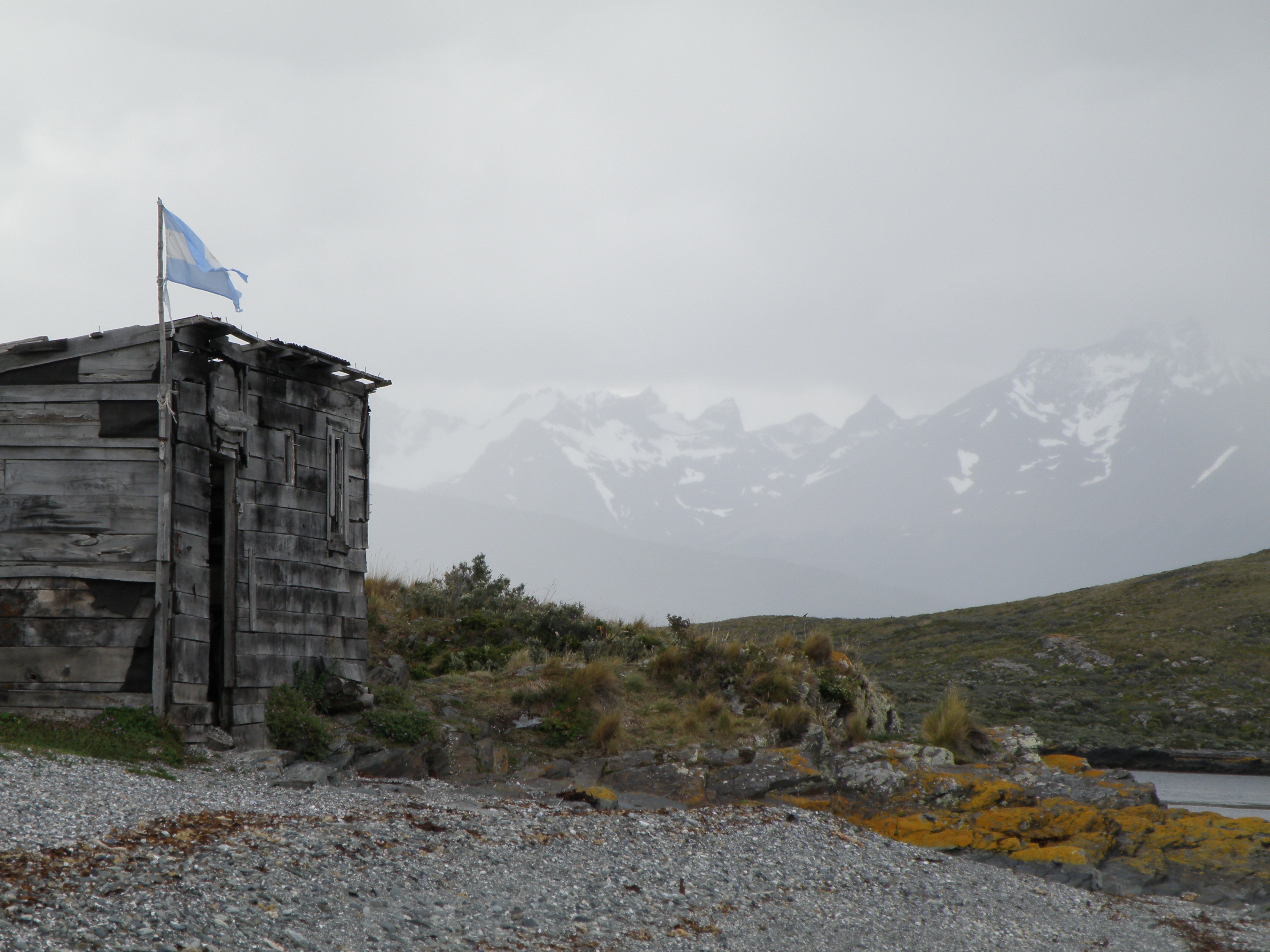 At 3pm I clambered on board a Canoero Catamaranes for a trip out into the Beagle Channel. Unfortunately, rain set in and shrouded the surrounding Fuegian Mountains in a thick cloud. The wind also picked up and temperatures dropped back below 10 Celsius. But the stunning views had camera-wielding tourists, many Japanese, jostling about and dashing backwards and forwards from the top deck to the warmth of the large cabin below. A bilingual tourist guide briefly escorted us onto the desolate rocky shore of Bird Island. Later we cruised past other rocky outposts and wave-swept shores crowded with rock cormorants and sea lions. I particularly enjoyed the first island stop and our little ramble to check out the archaeological evidence of indigenous settlements. I decided not to eat a Calafate berry, which they say will capture your heart and encourage you to live the rest of your days in this part of the world. I remembered first tasting a winberry, a similar wild blueberry fruit on a family walk up to Moel Famau Tower on the Clwydian Range back in the long hot summer of 1976. The rain by now had become heavy and we chugged back west through the bay to Ushuaia. Despite the chill, if this were a sign of experiences to come, I relished the days ahead.